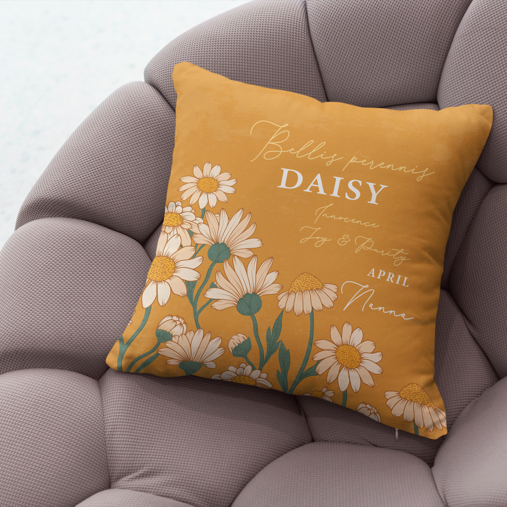 Personalised Birth Flower Cushion - April Daisy Design