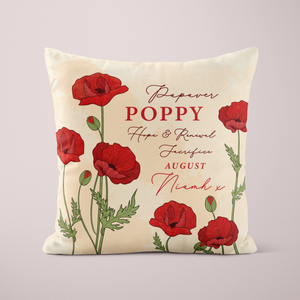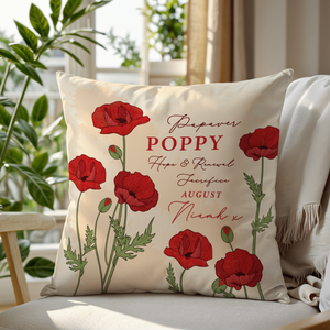 With vibrant floral detailing and name personalisation, it makes a striking gift or meaningful piece of home décor. Whether you’re commemorating a loved one or celebrating new beginnings, the poppy cushion adds colour and sentiment to any setting. A soft tribute to strength and remembrance.