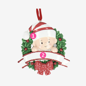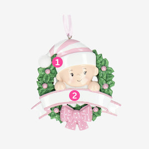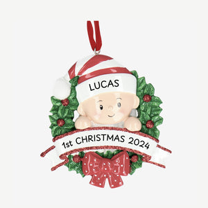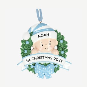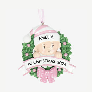 Baby 1st Christmas Bauble - Personalise with Name | Baby in a Wreath design | Christmas Decor