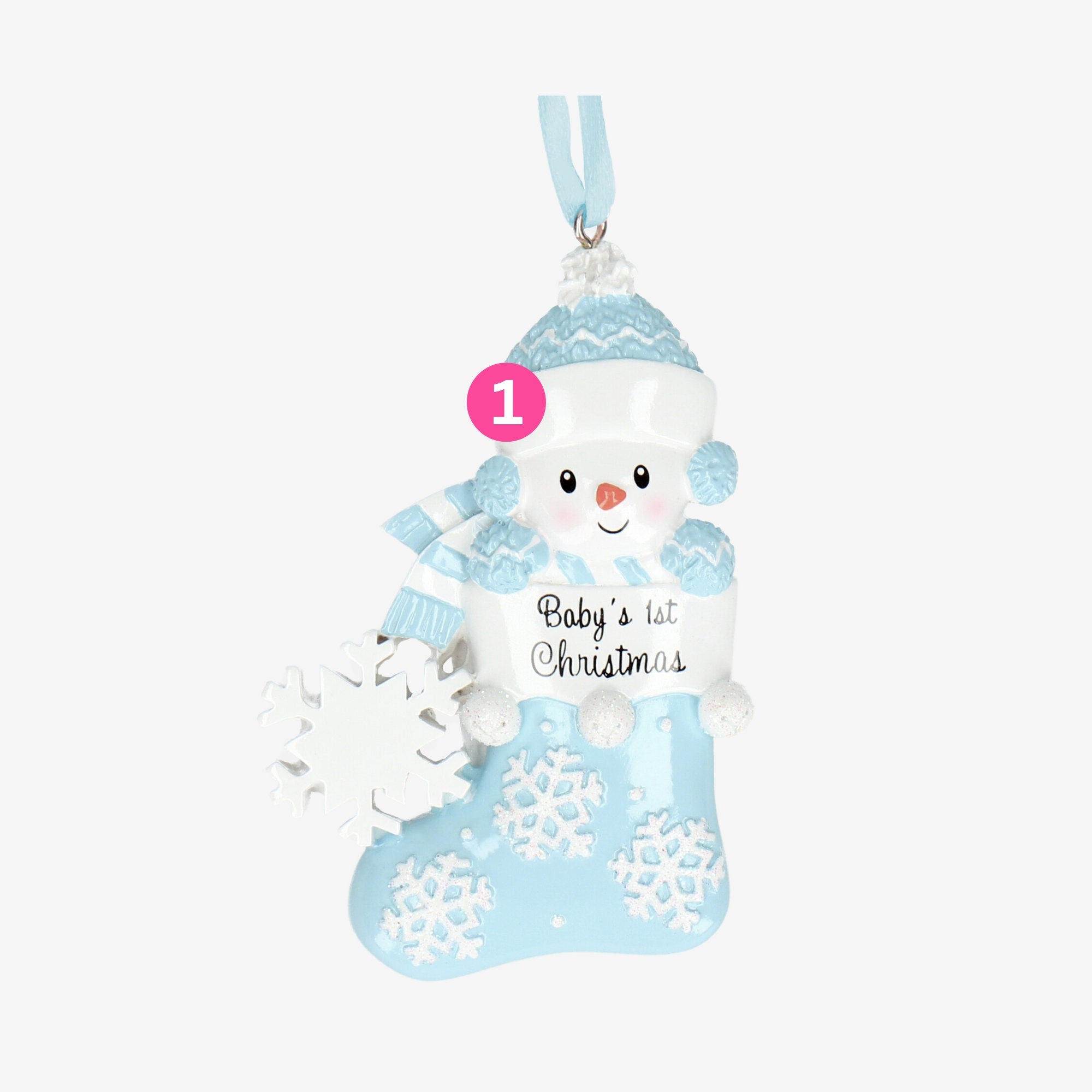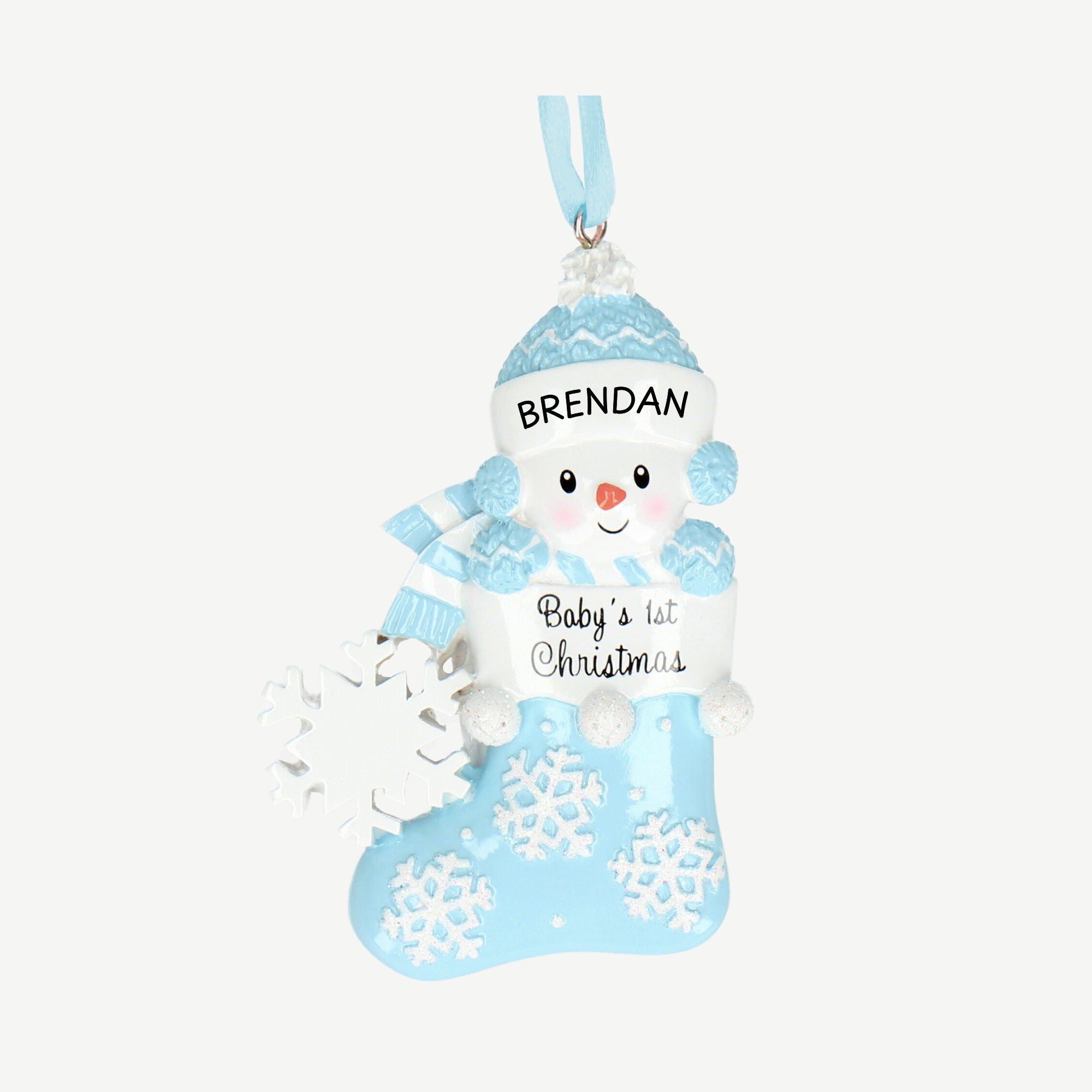 Baby Snowman Stocking Christmas Bauble - Personalised | Christmas Decor | Tree Ornament