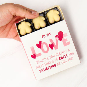 This box is available in multiple designs! This design for "To My Love - Because you deserve a treat that's as sweet and satisfying as you are".
