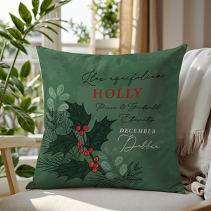 Bring festive peace and goodwill into your home with the December Birth Month Flower Cushion, featuring holly — a classic symbol of eternity and calm.