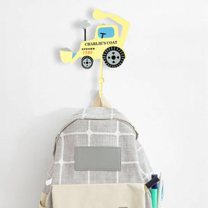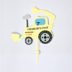 Personalised Digger Coat Wall Hook - Yellow or Green