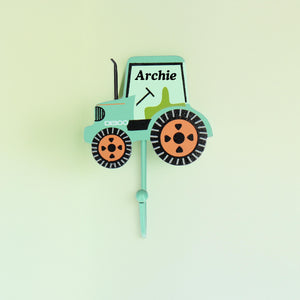 Hey there, tractor lover! This digger coat hook keeps things neat and tidy, in the kid's bedrooms, playroom or utility. These hooks help build a routine for the little ones, and helps the kids know which is one is theirs!