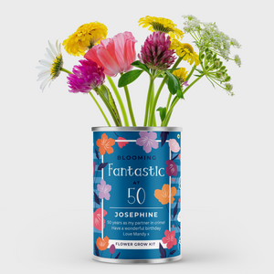 Celebrate a special birthday with the Fantastic at Flowers Tin, a thoughtful gift featuring a mix of wildflower seeds alongside all essentials for planting.