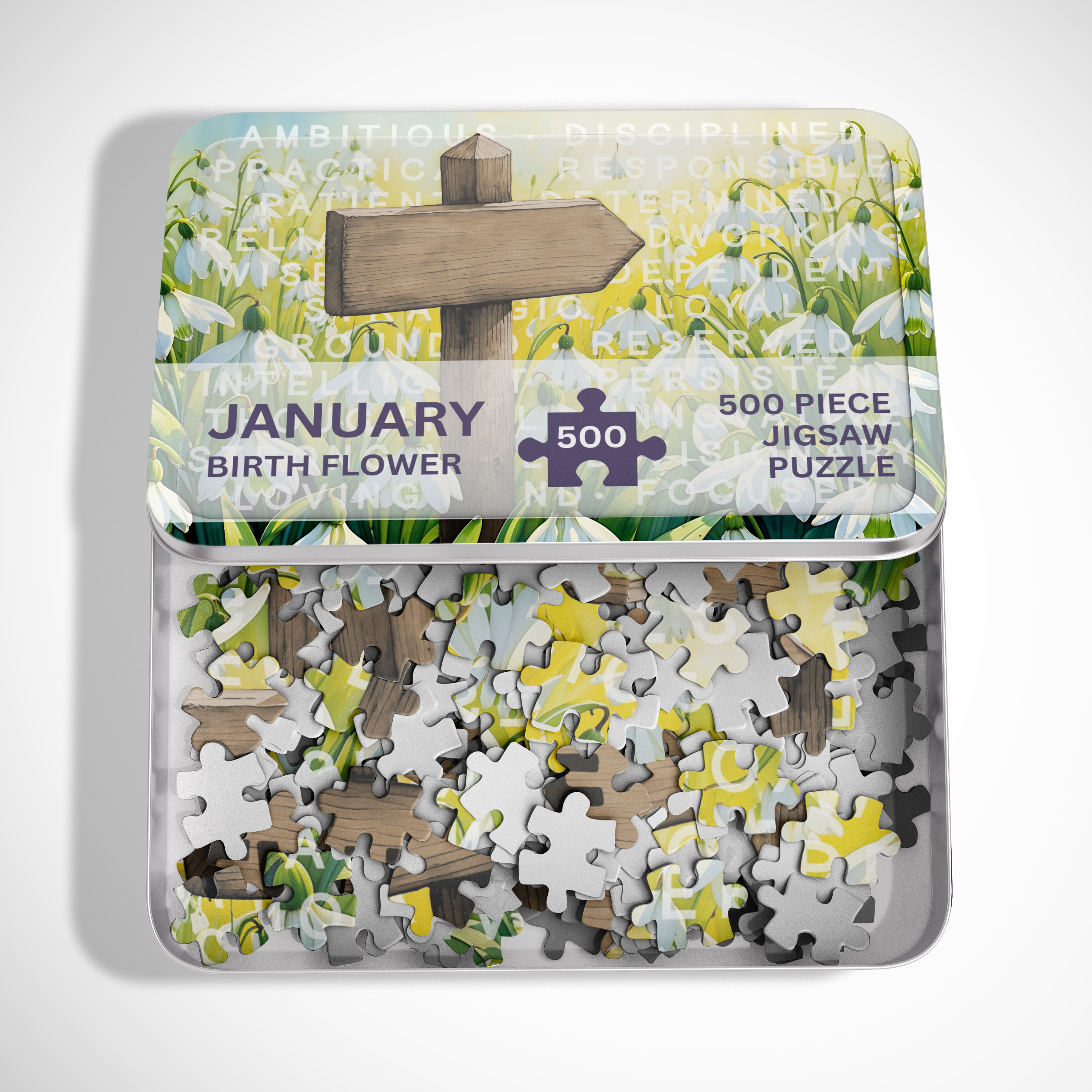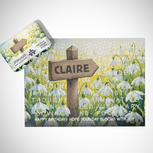 Celebrate her birthday with a delicate burst of January charm. This personalised jigsaw puzzle features elegant snowdrops, the birth flower of January, symbolising hope and new beginnings. It's more than just a birthday puzzle gift; it's a heartfelt keepsake she can treasure.