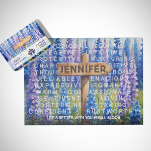 Celebrate her July birthday with a puzzle as expressive as she is. Featuring the larkspur—July’s birth flower and a symbol of positivity and open heart—this personalised jigsaw puzzle is a joyful tribute.