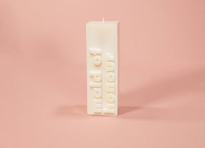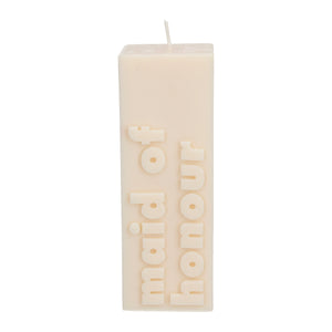 Introducing our elegant Maid of Honour Candle, designed to be the perfect gift for your cherished maid of honour. This beautifully crafted candle features the words “Maid of Honour” debossed down the front, adding a stylish and personal touch to your bridal party gifts. Available in both pink and cream variations, this candle suits any wedding theme and decor.