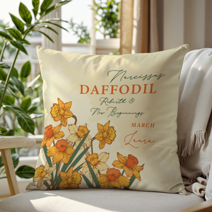 Personalised Birth Flower Cushion - March Daffodil Design