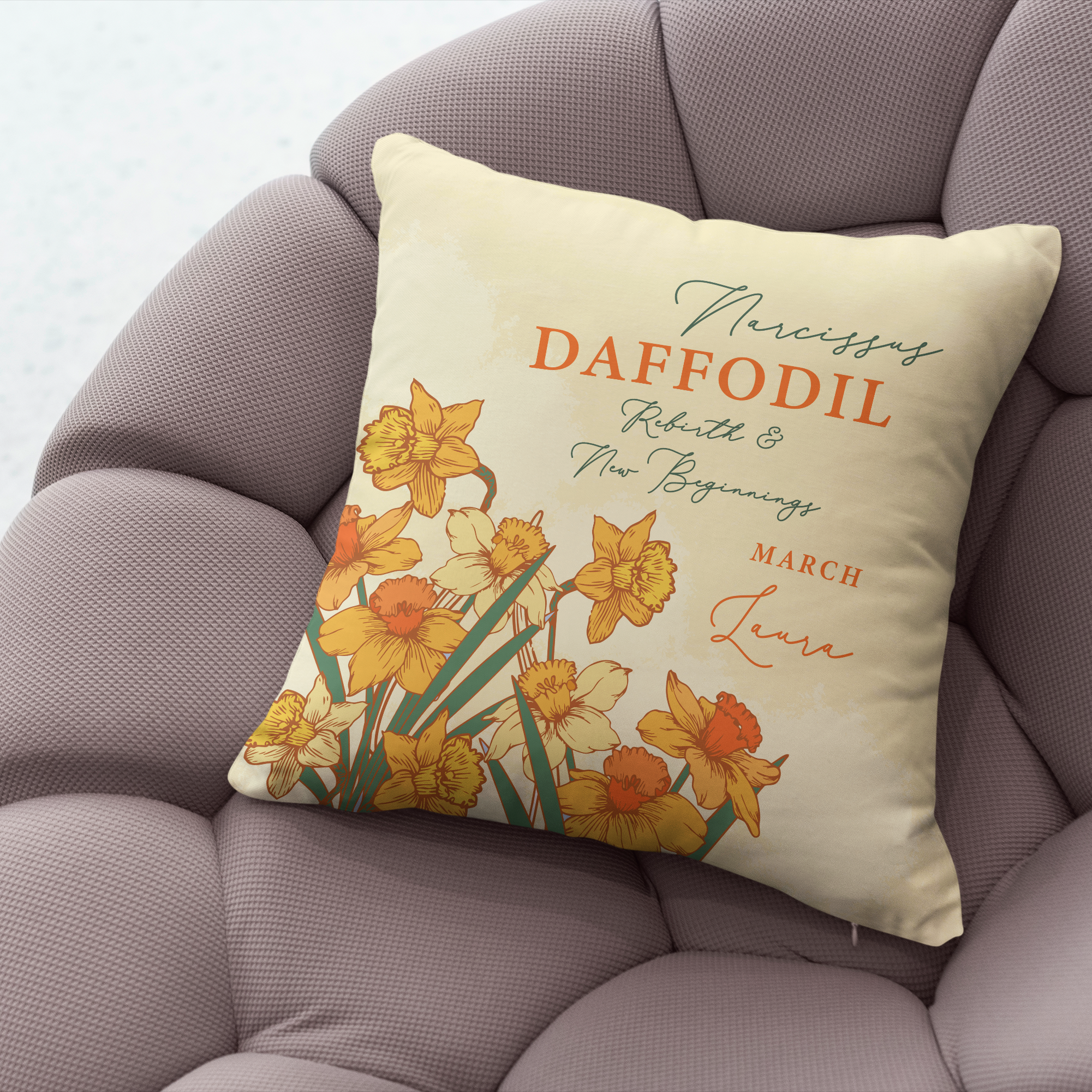 Welcome spring with the March Birth Month Flower Cushion, celebrating the daffodil — a vibrant symbol of rebirth and new beginnings.
