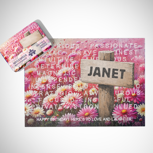Personalised with her name and an optional 40-character message, this jigsaw puzzle turns a quiet activity into something deeply personal. Choose the 250-piece (24cm x 36cm) or 500-piece (40cm x 54cm) version—both nestled in a beautiful tin, ready to be gifted.