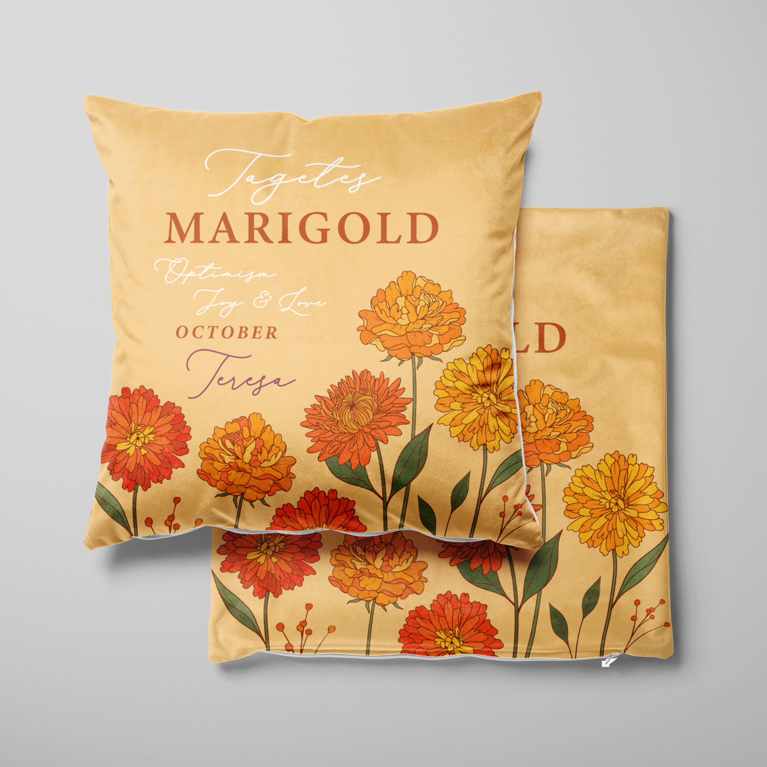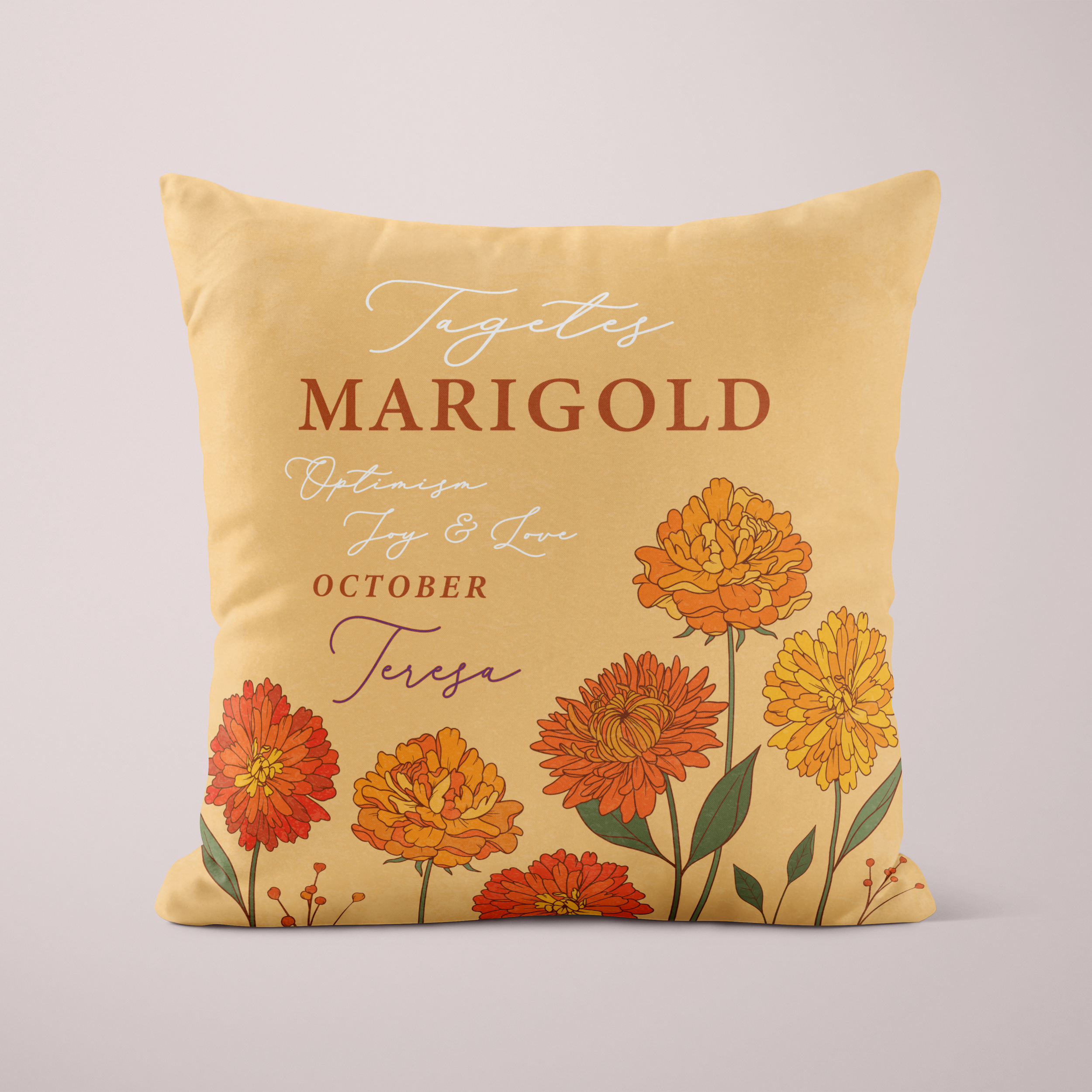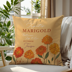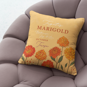 Personalised Birth Flower Cushion - October Marigold Design