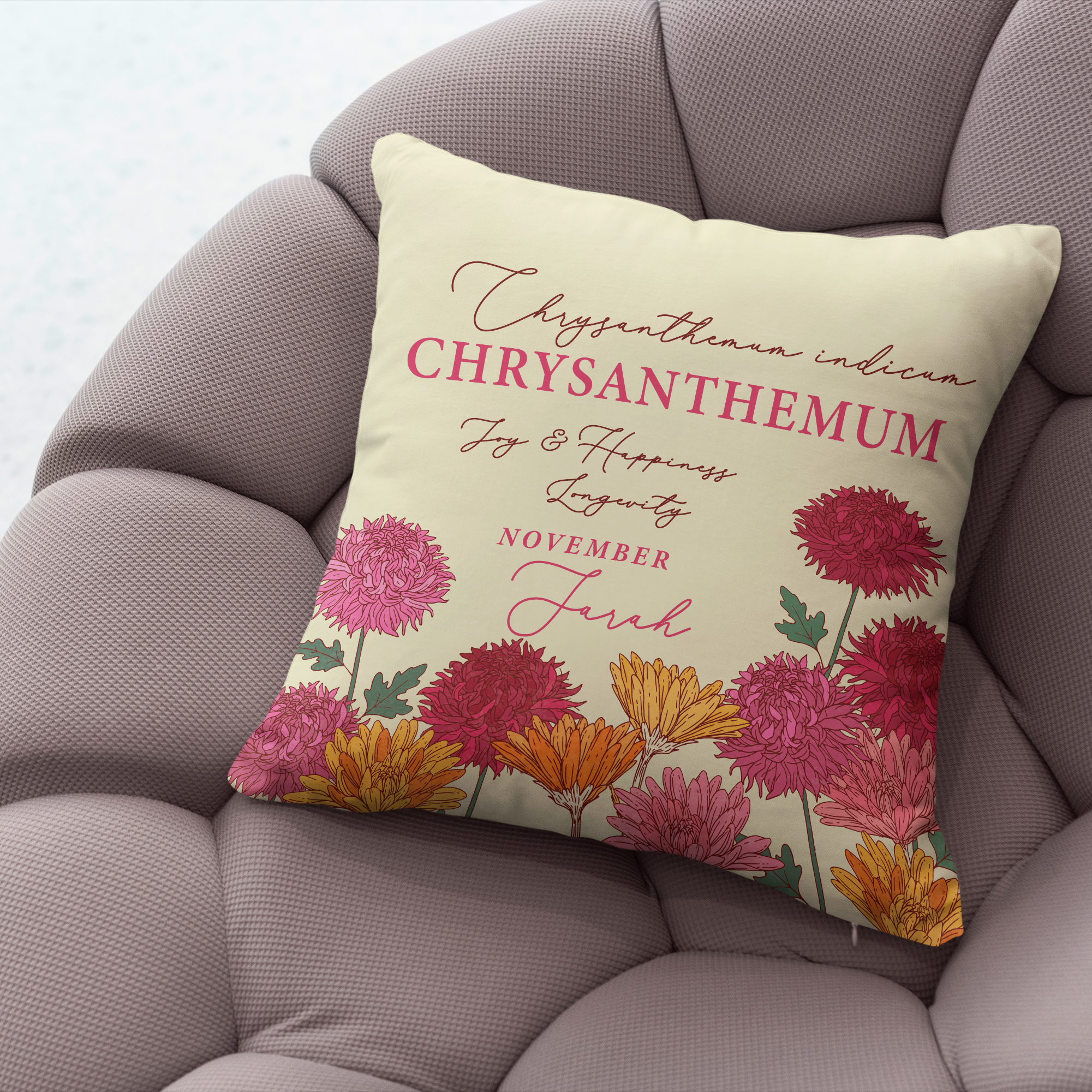 Personalised Birth Flower Cushion - November Chrysanthemum Design