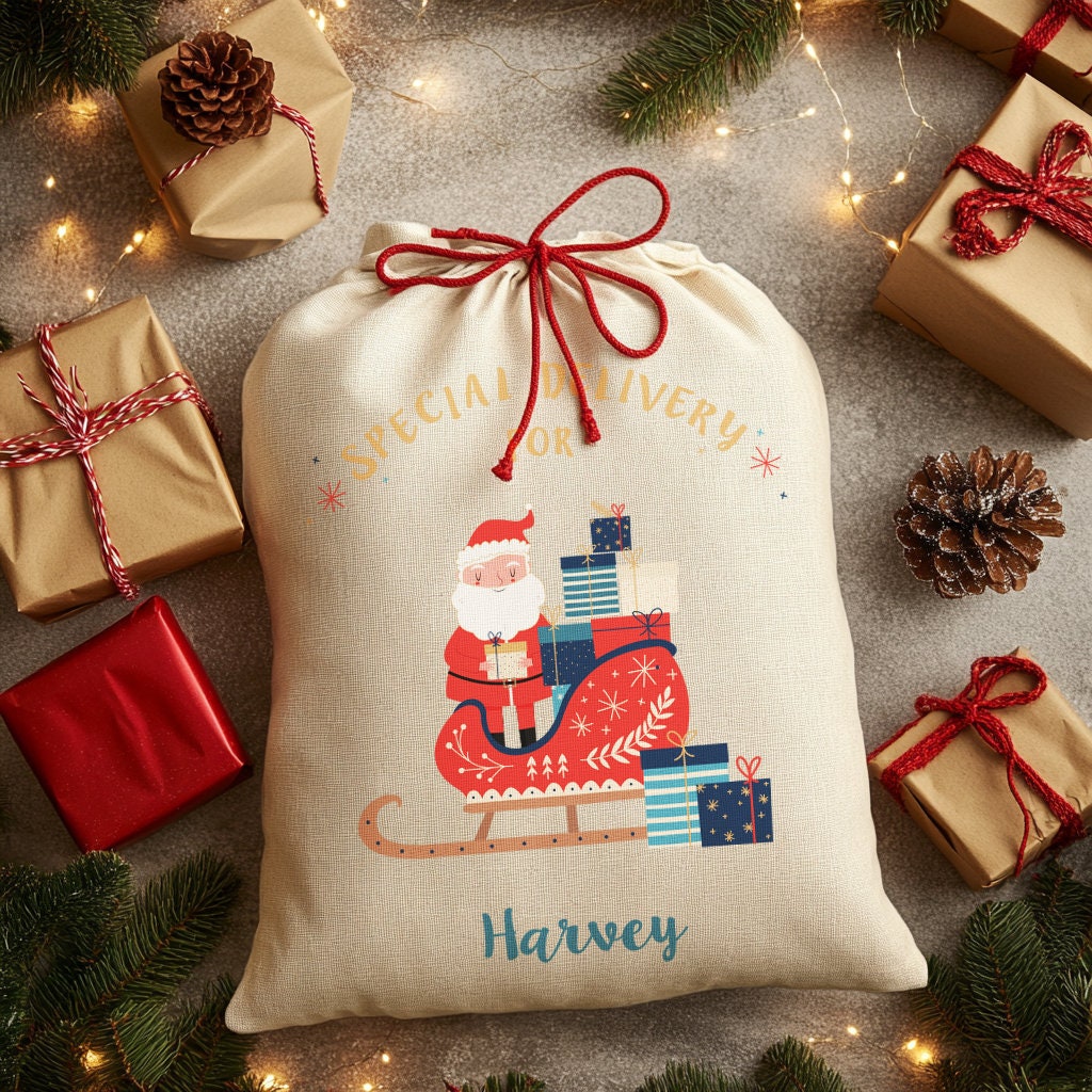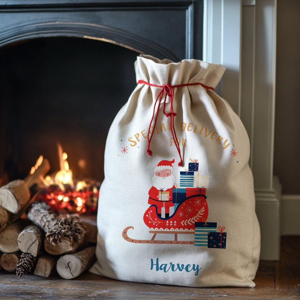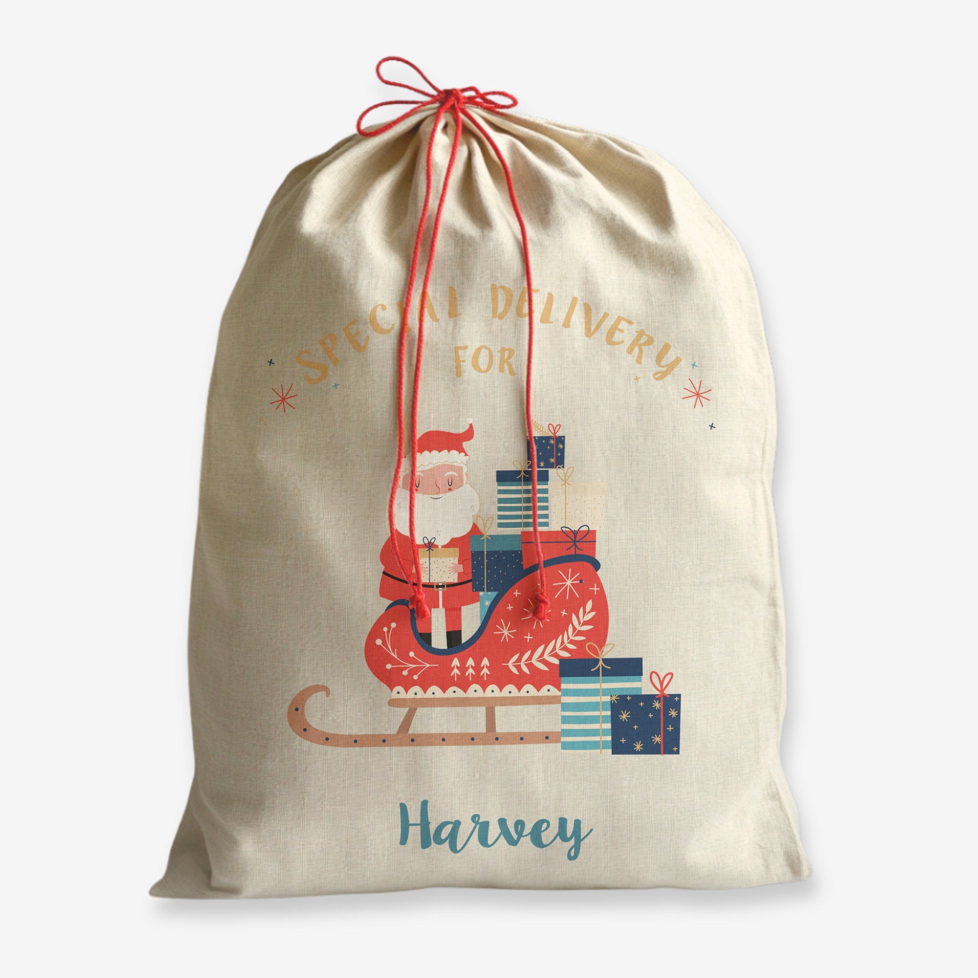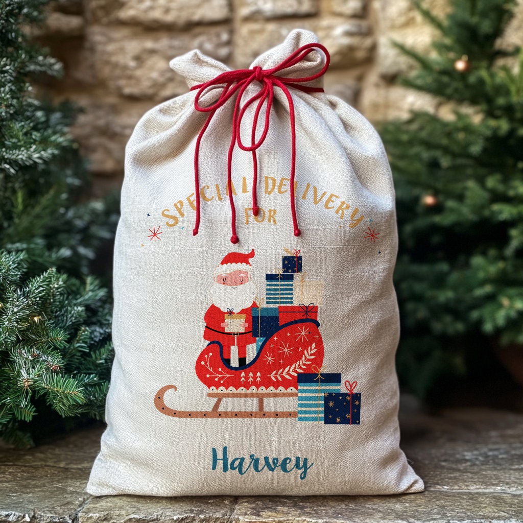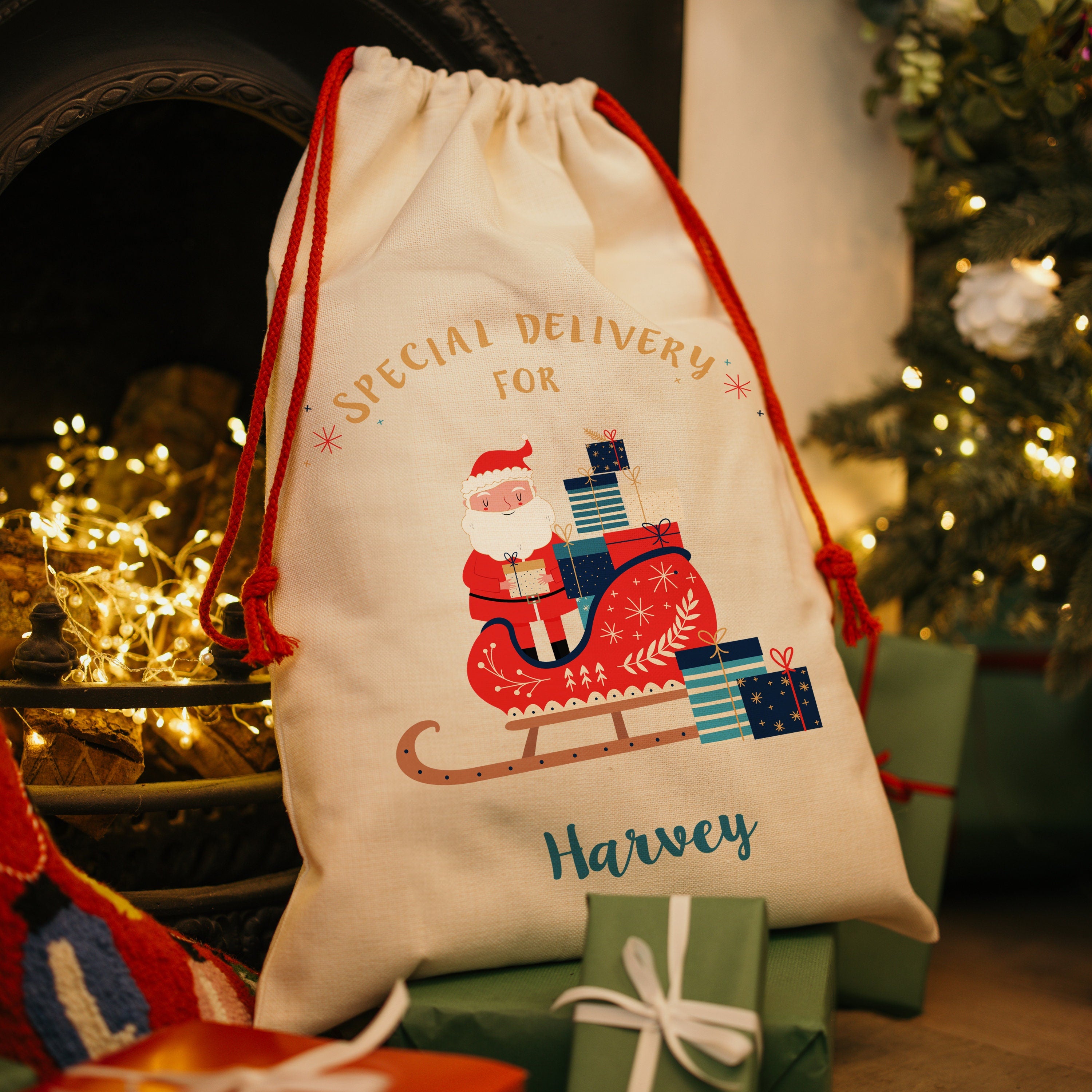 Personalised Christmas Presents Sack - Santa's Sleigh Design