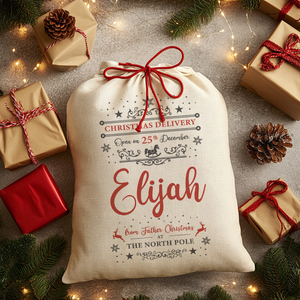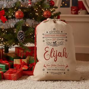 Looking to make this Christmas eve or Christmas day extra special? Say hello to our personalised Christmas sack, stack it with goodies from Santa, hang it on the fireplace or by the tree as a fun surprise, this custom Christmas sack brings all the magic of Christmas to life.