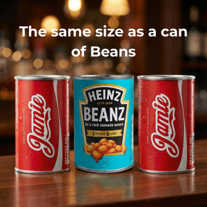 Personalised tin measuring 11cm x 7.5cm (the same size as baked beans)