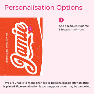 This personalised cola tin is filled to the brim with 300g of classic cola bottle sweets and finished with a custom name on the front, making it a brilliant keepsake as well as a tasty treat.