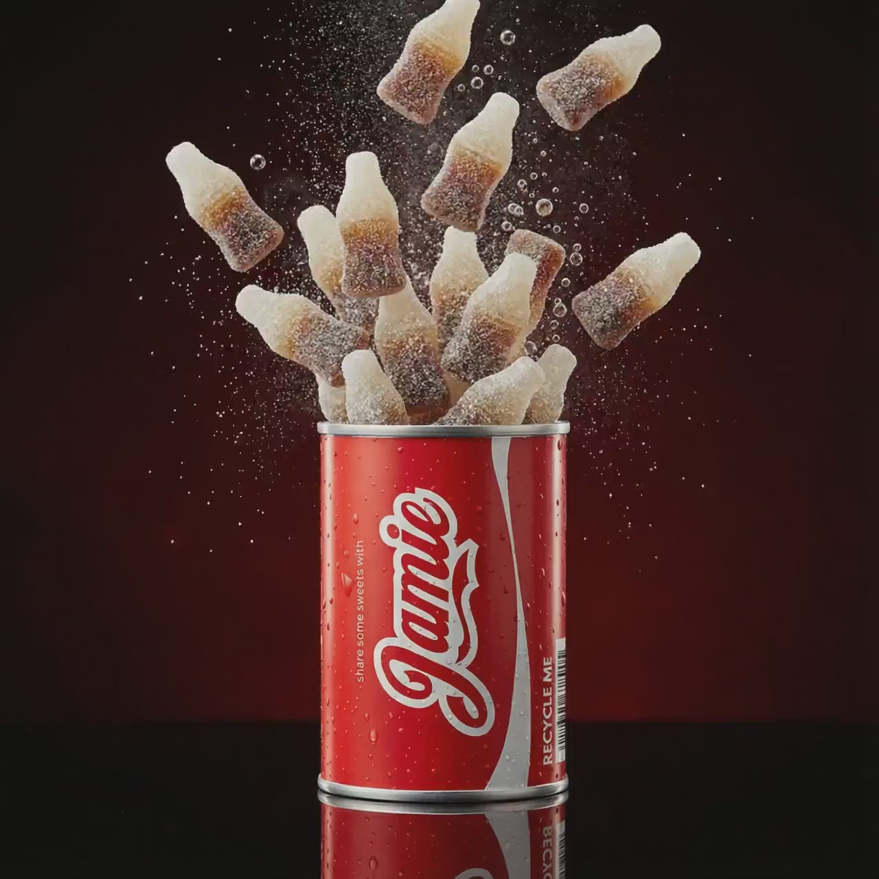 Personalised Retro Cola Sweet Can with Cola Bottles