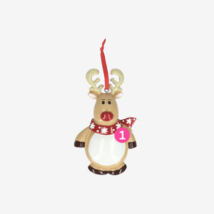 Our hand-made ceramic personalised Christmas decoration is the perfect way to add a bit of personality to your Christmas decor. It’s got an adorable Christmas Hat you can customise with the names of your loved ones—how sweet is that? This adorable reindeer ornament features a bright red nose, reminiscent of Rudolph, along with wide, joyful eyes and antlers. Wrapped in a cozy red scarf with white snowflakes.