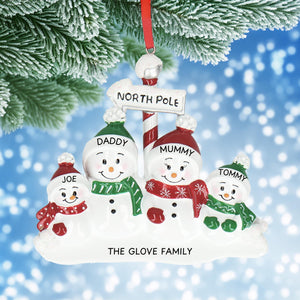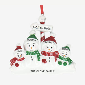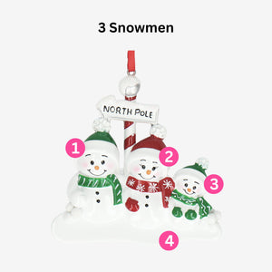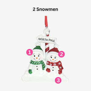 This delightful Christmas ornament features two lovable snowmen at the North Pole, bundled up in festive red and green winter attire. With cute smiling faces, snowflake details, and a classic candy cane-striped signpost, this ornament brings the magic of the holiday season to life. Perfect for hanging on your tree or displaying on a mantel, it adds a cozy, festive touch to any Christmas decor.